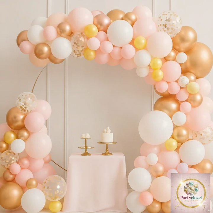 80 pcs Baby Pink White Rose Gold Confetti Balloons Garland Theme Set For Bow Themed Party Decoration & Celebration