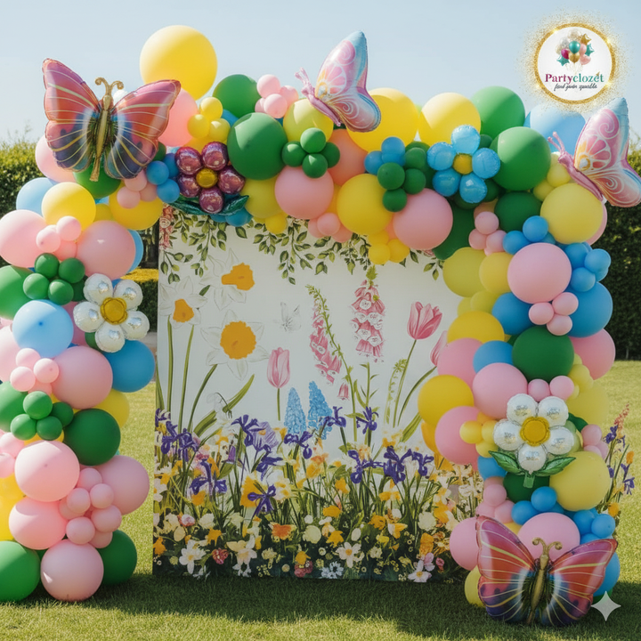4pcs mini butterfly balloon /3 pcs flower different color/ 5" 20 pcs balloon blue pink green yellow /10" 51 blue pink green yellow pcs c/ 12" 20 pcs blue pink green yellow other item include likely tapes