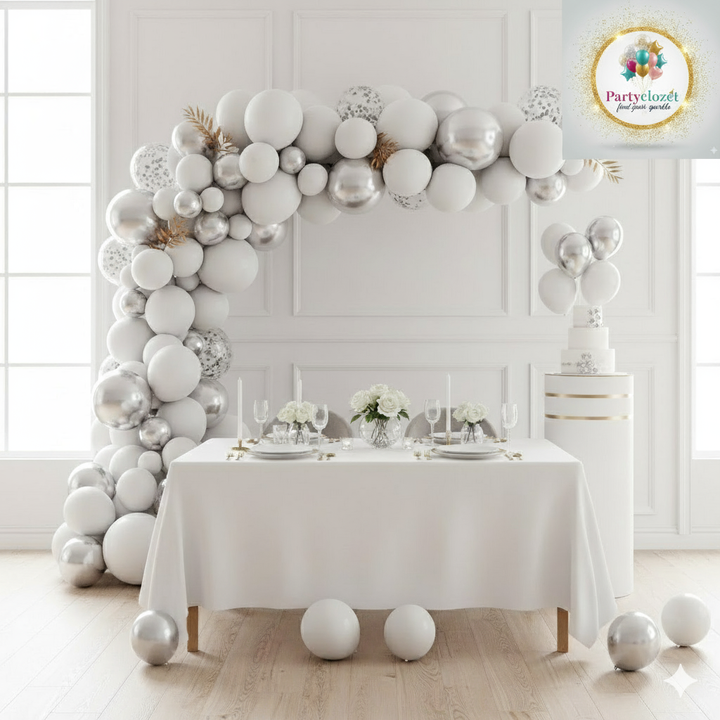 98 pcs White , silver Glitter Confetti Balloons Garland Theme Set For Bow Themed Party Decoration & Celebration