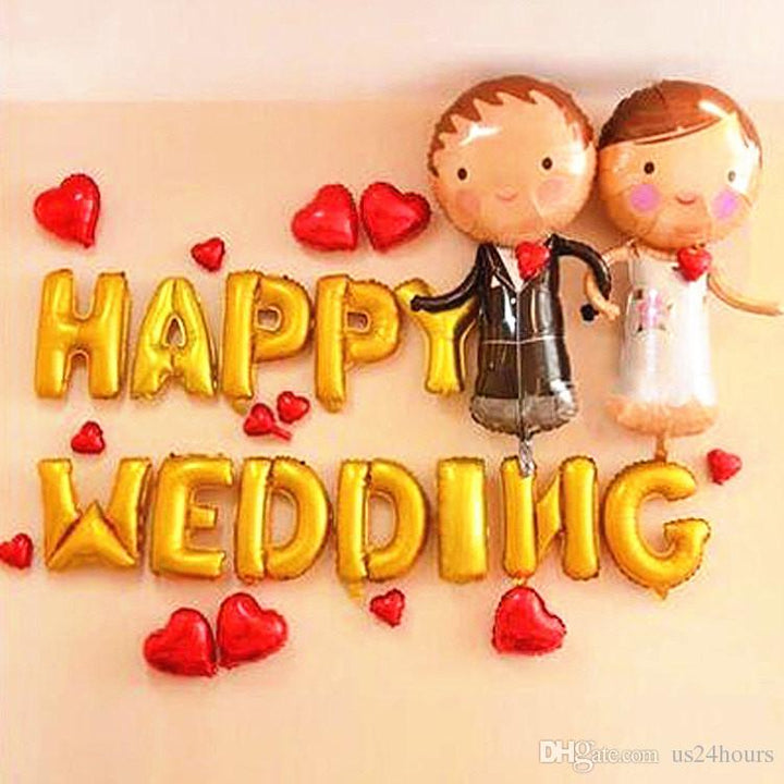HAPPY WEDDING Foil Balloons Set for Anniversary Theme Celebration & Decoration