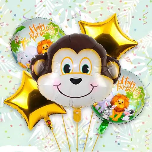 Moneky Face Character Foil Balloon Set - 5 Pieces For Moneky Face Theme Party Celebration